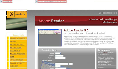 Hier ein Screenshot von mcaffe.de inkl. Softwaresammler-Popup: