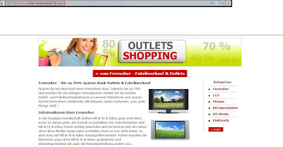 Da man beim klicken auf die Werbeanzeigen jedoch nur jeweils auf eine Subdomain wie bspw. fernseher.outlets-fabrikverkauf-24.com geleitet wird, vergleichen wir diese doch einmal direkt mit der Hauptdomain unter outlets-fabrikverkauf-24.com.