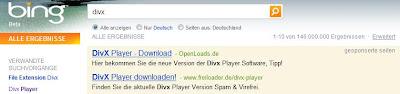 Wer auf Bing.com nach „Divx“ sucht, wird gleich mit mehreren Abzockern konfrontiert: