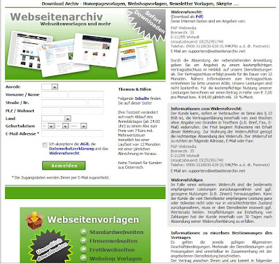 Wenn ma sich ein wenig mit dieser P & P Webmedia beschäftigt, so wird man schnell auf die Domain Vorlagenarchiv.net aufmerksam – Und so sieht Vorlagenarchiv.net aus: