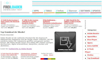 Die nächste Werbeanzeige verweist auf Freiloader.de/Divx-Player:
