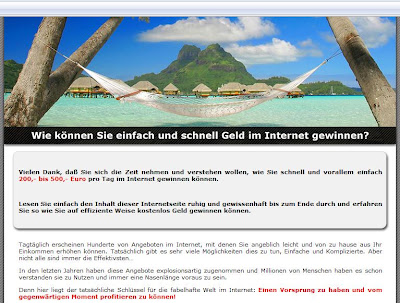 Eine erst kürzlich beschriebene Casino-Masche des Herrn Timo Richert wird allem Anschein nach auch im Umfeld der sogenannten “Dialermafia” genutzt. Mehr zufällig als gezielt bin ich auf der Suche nach aktuell beworbenen Abzockangeboten über einen Ableger von Kino.to auf ein ganz ähnliches Angebot unter Schnell-Geld-Machen.com aufmerksam geworden – Was man hier so alles finden kann, möchte ich Ihnen natürlich nicht vorenthalten.