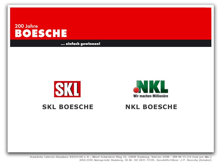 Heute (5.02.08) hätte ich auch meine 25 Jahre -Sofort- Rente über 3333,00 von Boesche gewinnen können,ich sollte aber bis spätestens zum 31.01.08 anrufen, ich habe den Brief sofort an die NKL weiter geleitet mit der bitte die Angelegenheit für mich zu klären und sofort meine Adresse bei Boesche zu löschen.