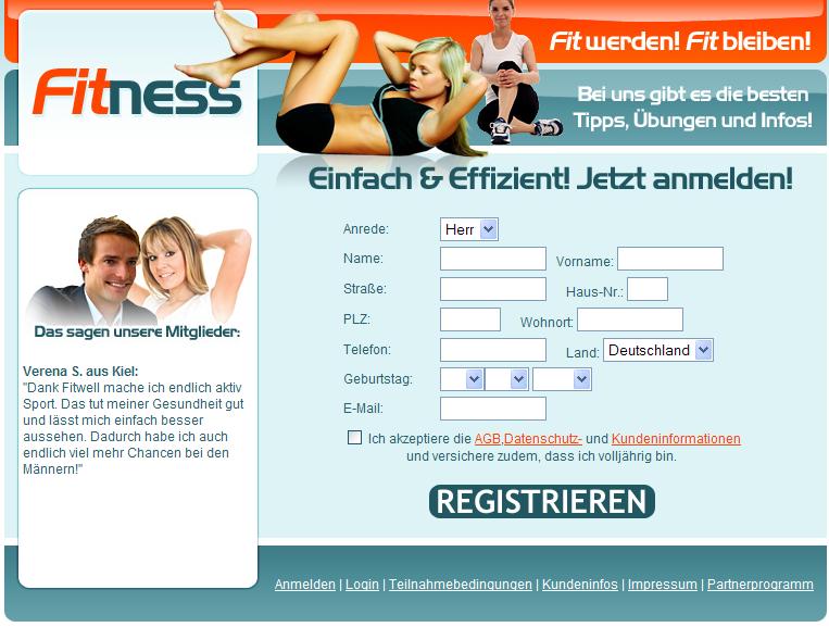 Die Hauptseite kommt doch eher seriös rüber, auch ist hier keine Rede von einer Kostenpflicht. Die Schwerpunkte der Seite sind Diät, Fitness, Wellness und Ernährung, doch man kann die einzelnen Punkte über die Hauptseite nicht erreichen.
