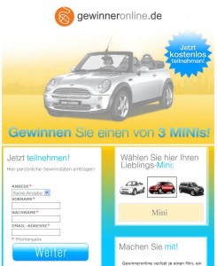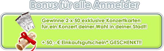 Nicht nur dass Ihre E-Mail Adresse bereits im Eingabeformular eingetragen ist, sondern auch ein Gewinnspiel, sowie ein Gutschein von Euro 50,- sollen zur Anmeldung bewegen: