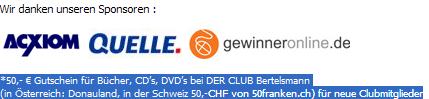Als weiterer Sponsor wird der Anbieter Acxiom Deutschland GmbH genannt: