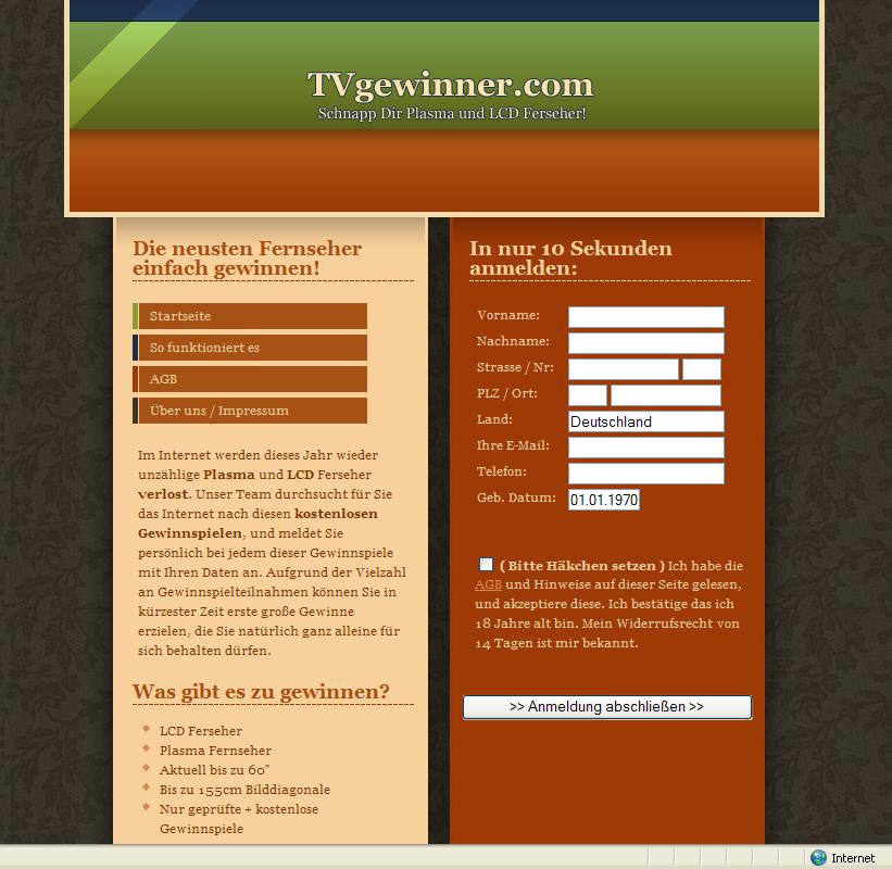 Ganz frisch, via Spam-Mail, ist ein Abzock-Angebot der „Be a Winner Ltd.“ von „Timo Richert“ mit dem Namen TVgewinner.com eingegangen: