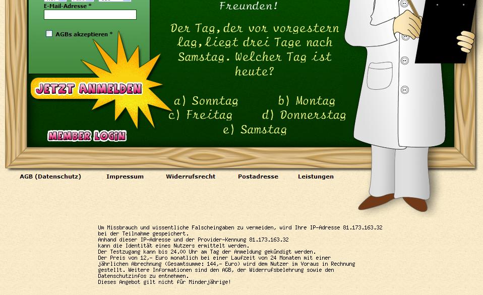 Via Google-Anzeige versucht die New Reseller Ltd. erneut mit einem Abzock-Angebot auf sich aufmerksam zu machen. Diesmal mit einem IQ-Test unter IQ-Turnier.com. Dieser Anbieter hat sich auf die Zielgruppe „Kinder“ spezialisiert.