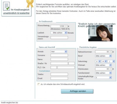 Und das ist die Seite Kredit-Vergleichen.biz: