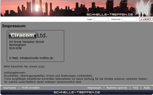 Hier geht es leider nicht mehr so transparent weiter, denn man muss rätseln wer der Geschäftsführer, bzw. Director der Ciracom Ltd. ist. Auch findet sich keine Telefonnummer, also schauen wir auch mal in den Whois-Eintrag zu schnelle-treffen.de: