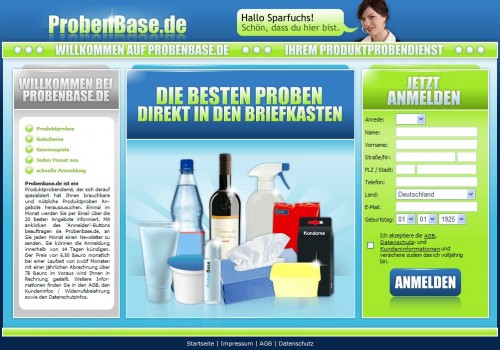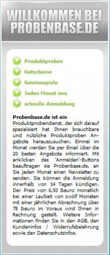 Via Google-Anzeige bin ich auf das Angebot von Probenbase.de aufmerksam geworden. Wer sich hier anmeldet, um monatlich einen Newsletter mit ausgesuchten Produktproben zu erhalten, kann mit einer Rechnung i. H. v. € 78,- rechnen. Bei näherer Betrachtung von Probenbase.de steht eins schon mal fest; Herr Ahmad Kakar hat eine neue Plattform.
