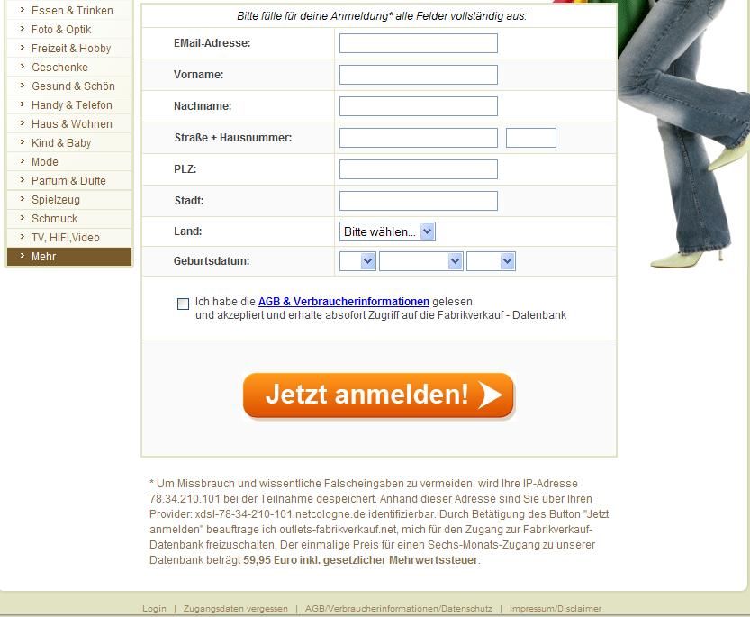 Das Angebot von Outlets-Fabrikverkauf.net ist lediglich ein Nachfolger der bereits einschlägig bekannten Seite Fabriverkauf.com: