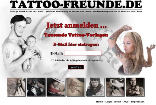 Besondere Beachtung sollte auch die eingetragene E-Mail Adresse finden, die auf die identisch aufgebaute Seite tattoo-freunde.de hinweist: