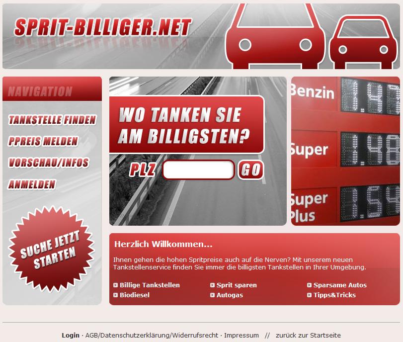 Derselbe Aufbau wie schon bei Wie-schlau-bist-du.de, eine weitere Kostenfalle der InfoService Ltd. findet man auch unter sprit-billiger.net: