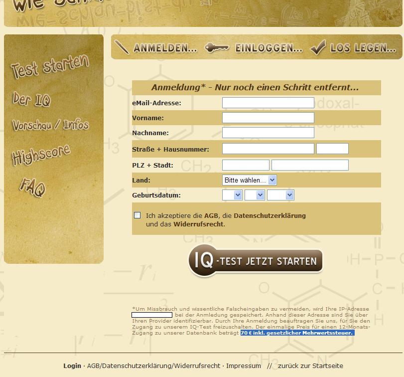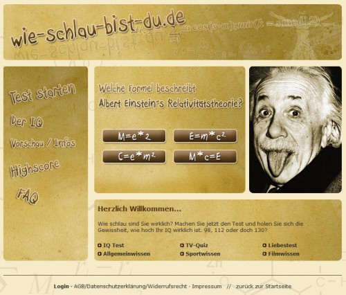 In den Google-Anzeigen bin ich soeben auf das Angebot Wie-schlau-bist-du.de von der InfoService Ltd. aufmerksam geworden. Wieder ein neuer IQ-Test im Internet, der im Grunde nur eine weitere Kostenfalle ist, doch sehen Sie am besten selbst.