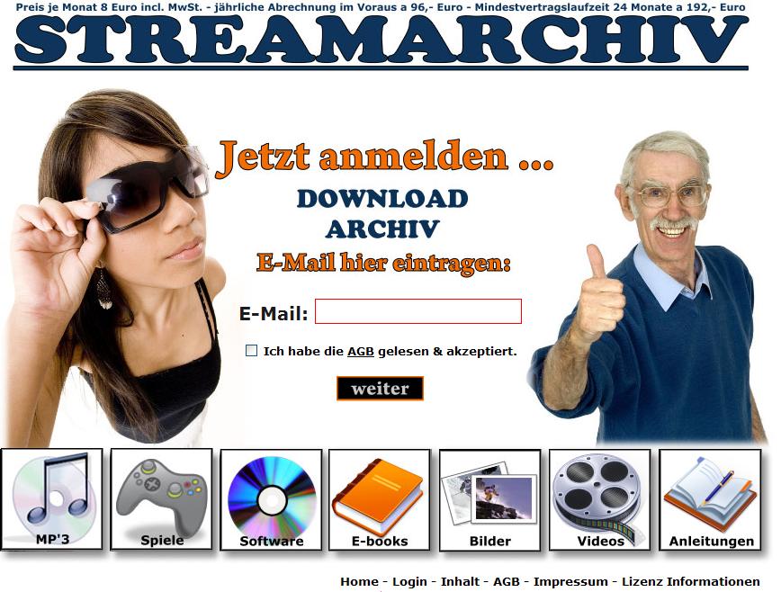 Derzeit bewirbt die Net 24 Ltd. & Co. KG das Onlineangebot streamarchiv.com hinter dem sich ein kostenpflichtiges Abonnement verbirgt. Die Masche ist dieselbe wie bei Gifs-Freunde.de, doch sehen Sie am besten selbst: