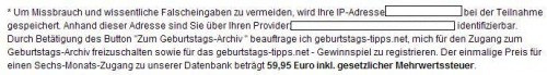 Zwar wurden einige Seiten der Online Content Ltd., wohl aus gutem Grund, auf die Go Web Ltd. überschrieben, doch schon wird eine neue Domain unter geburtstags-tipps.net aktiv beworben. Dahinter verbirgt sich die einschlägig bekannte Seite geburtstags-infos.de.