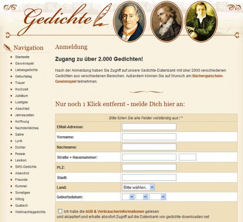 Die Links führen Sie jeweils auf das Anmeldeformular von Gedichte-Downloaden.net: