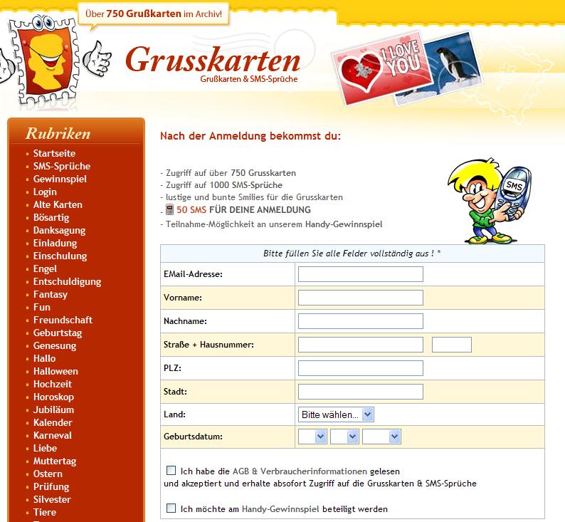 Die Links führen Sie auf das Anmeldeformular von Grusskarten.de: