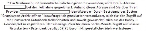 4 Gedanken zu „Warnung vor Kostenpflicht auf Grusskarten.de der Online Content Ltd.“