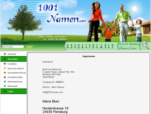 Ob der neue Director Herr Heinzer einen neuen Weg versucht ist nur zu vermuten, denn auf der Seite 1001namen.com befindet sich auf einmal ein Kostenhinweis: