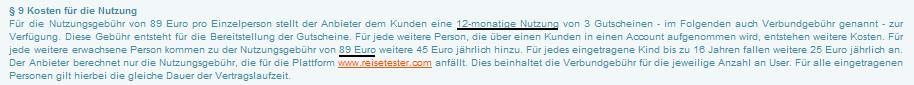 Hier liest man diverse Suggestionen, von „In ganz Europa testen“, „Gratis Aufenthalte als Reisetester“ und „Auf freie Plätze prüfen“. Auf die jährlichen Kosten i. H. v. € 89,- wird nur in den AGB hingewiesen. Das reicht nicht aus, um ein Vertragsverhältnis zu begründen!