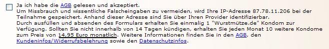 In diesem Zusammenhang wurde am 01.08.2008 über ein via E-Mail der EuMedien GmbH beworbenes Angebot der kajomi GmbH berichtet, welches auf ein Abzockangebot unter Wurstmuetze.de der McCrazy GmbH weitergeleitet hat.