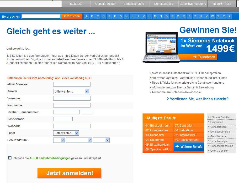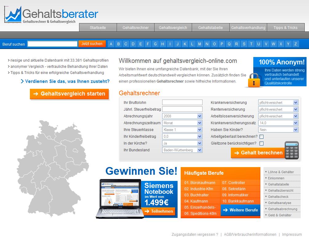 Lt. diesem Fließtext befinden wir uns nicht auf Gehaltsrechner-Web.com, sondern auf Gehaltsvergleich-Online.com, was jedoch keinen wirklichen Unterschied macht, da es sich bei beiden Seiten um dasselbe Abzockangebot handelt.