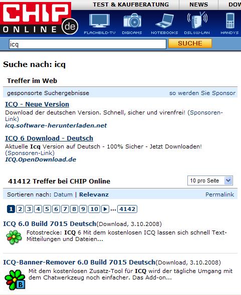 Bereits im August wurde auf Augsblog.de darüber berichtet, dass einige Suchergebnisse auf der Internetpräsenz von Chip.de auf das Abzockangebot von Mega-Downloads.net der Blue Byte FZE verweisen. Heute, also mehr als 2 Monate später, wird klar, warum die Anzahl der Betroffenen Internetnutzer nicht abnehmen. Als Beispiel soll der vor allem bei Jugendlichen bzw. Minderjährigen beliebte Messenger ICQ als Beispiel dienen: