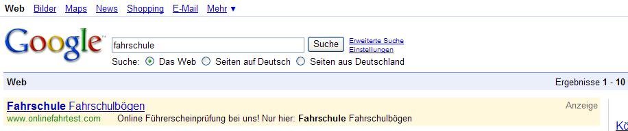 …ich denke das sich, mit Hilfe von Google, bald wieder viele betroffene zu Wort melden werden. Wie ich darauf komme? Na weil 95 % aller Internetnutzer die Suchmaschine Google verwenden und beim Suchbegriff „Fahrschule“ direkt in die Falle laufen: