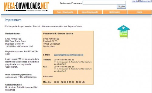 Zum Vergleich ein Screenshot von Mega-Downloads.net der Load House FZE: