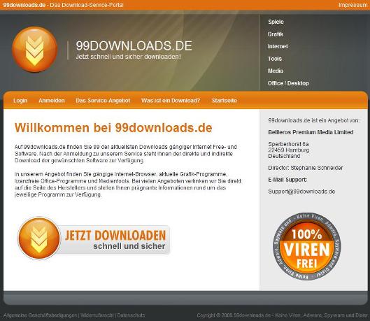 Hier mal ein Vergleich der Startseiten von 99Downloads.de / 21.01.2009: