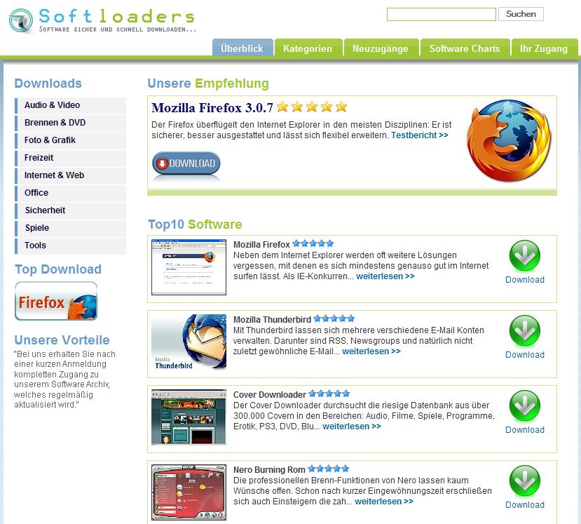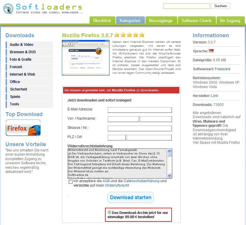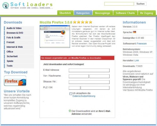 So schnell wird ein kostenloses Portal kostenpflichtig. Ob die hier angebotenen Downloads auch manipuliert sind, bleibt vorerst offen. Verantwortlich für die dreisten Abzockangebote softloaders.de und speed-loader.de lt. Whois: