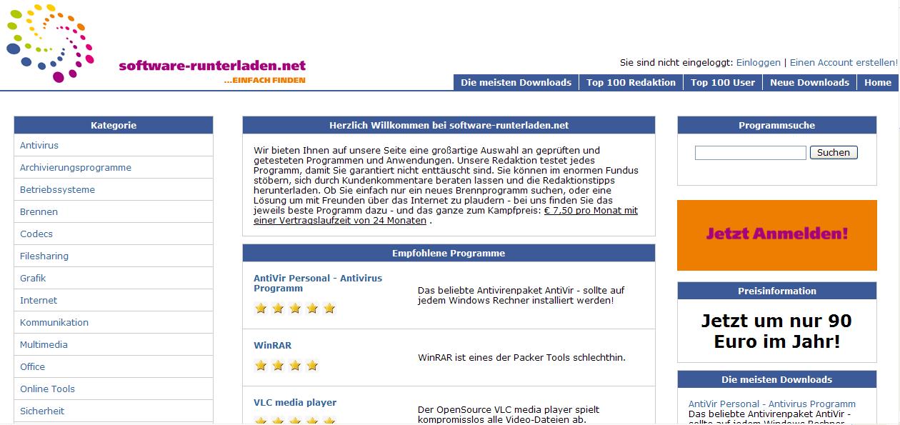 Die Startseite von Software-Runterladen.net: