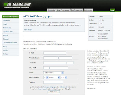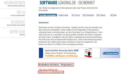 Auch hält die Seite Software-Loading.de noch ein kleines Schmankerl bereit, denn wer sich durch die Seiten klickt findet ironischerweise unter der Rubrik „Sicherheit“ noch ein weiteres Abzockangebot, bzw. eine Verlinkung zu einer Lockvogelseite unter AV-Download.net: