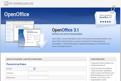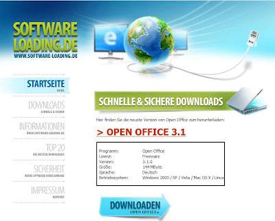Als nächste dubiose Lockvogelseite wäre Software-Loading.de zu nennen, welche ebenfalls mit guten Namen wie bspw. von „Openoffice“ Geld machen möchten: