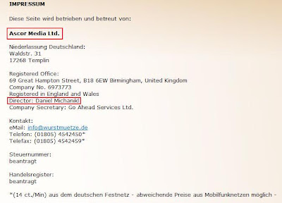 Wie eng die Verflechtungen zwischen der EuMedien GmbH und der Nutzlosbranche sind offenbart sich auch hier wieder einmal eindrucksvoll, denn die Ascor Media Ltd. zeichnet sich heute auch für das Abzockangebot Wurstmuetze.de veranwortlich (vorher Gesellschaft für Online-Gewinnspiele Ltd. der Herren Stefan Appenrodt, Thomas Appenrodt und Olaf Strecker, auch bekannt als Datenlieferanten für Abzocker mit der McCrazy GmbH):