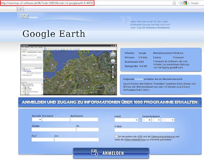 Die Infoportale Antiabzockenet und The-New-Boo warnen aktuell vor Lockvogeldomains auf der Suche nach Googles Streetview, welche auf das einschlägig bekannte Abzockangebot Top-of-Software.de der Antassia GmbH (vorher Opendownload.de und Softwaresammler.de) des Herrn Alexander Varin (Strohmann der Gebrüder Schmidtlein) weiterleiten – dies gilt allerdings nur für Anwender am PC, denn wer die Lockvogelseiten bspw. über das iPhone aufruft, wird hier interessanterweise auf kostenpflichtige Erotikseiten geleitet.