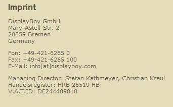 Kommen wir nun noch einmal auf die Domain Displayboy.com zurück, denn diese gehört zu einer Displayboy GmbH aus Bremen: