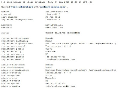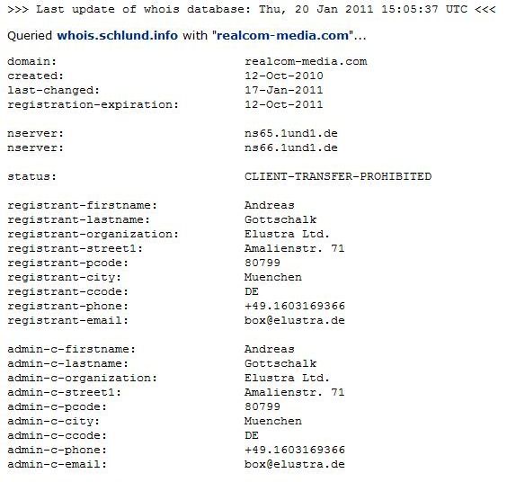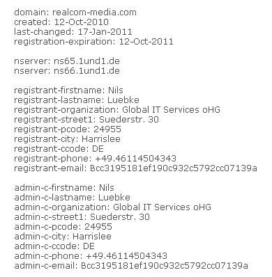 Interessant, aktuell finden sich folgende Daten in der Whois von Realcom-Media.com: