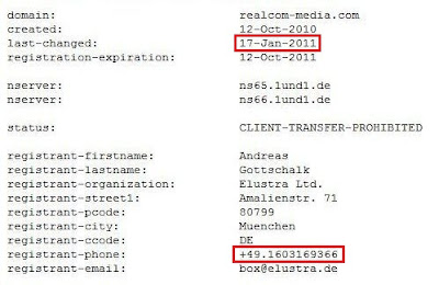 Ohne näher auf die „Theresienstraße“ einzugehen stellt sich hier die Frage, ob Herr Nils Lübke bemerkt hat, dass die Rufnummer der veränderten Whois von Realcom-Media.com auf Herrn Andreas G. (Elustra Ltd.) noch verräterischer sein könnte:
